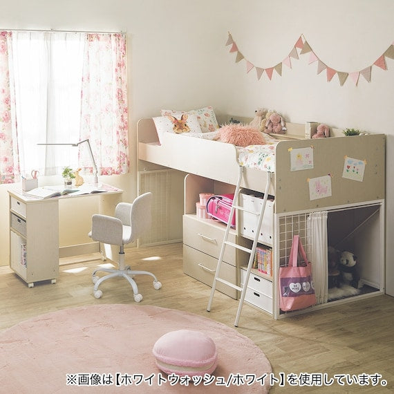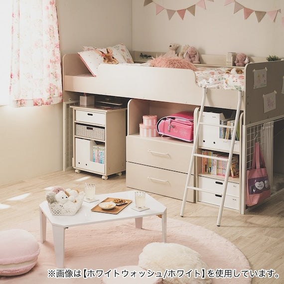 The desk can be completely stored under the bed when friends come over. Space can be used effectively. The desk has casters so it is easy to move.