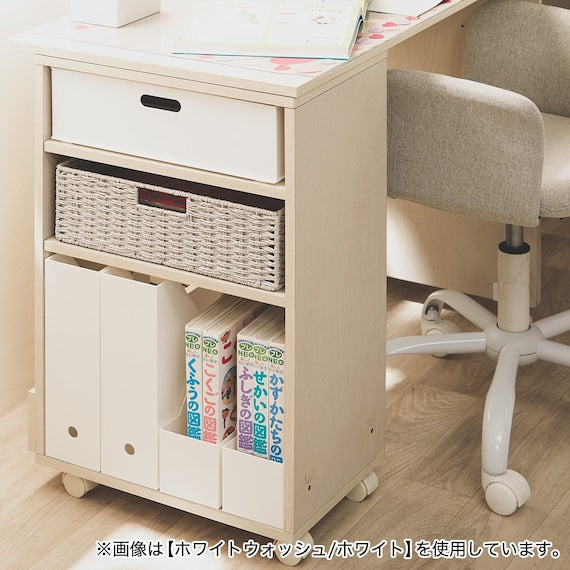 There is storage next to the desk, so you can store your writing utensils on the top and notebooks and dictionaries on the bottom, so you can start studying right away.