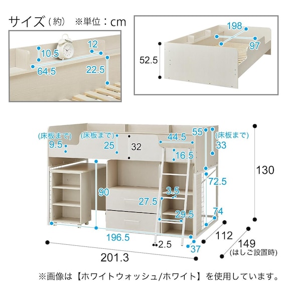 | Size | [System bed] W 201.3 x D 112 x H 130 cm [Light + outlet box] W 49.2 x D 6.2 x H 41 cm |