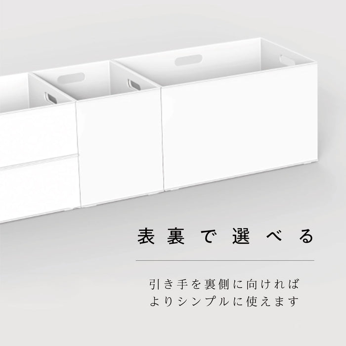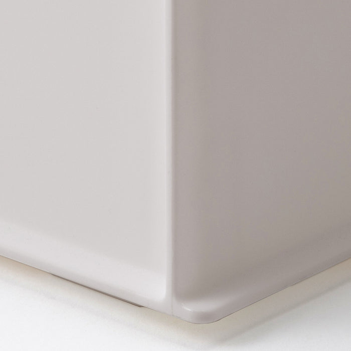 角の丸みがなくなり、正面持ち手リブがなくなったことで、住空間に溶け込む直線的なかたちとなり、サイズ違いで組み合わせても、ピタッとそろいます。