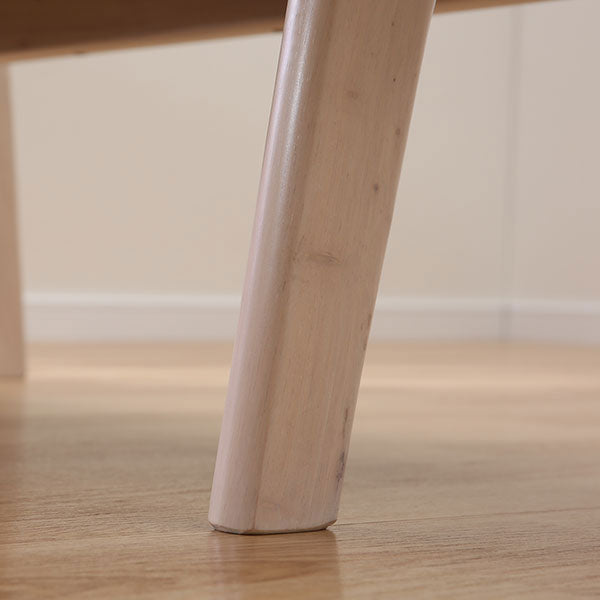 丸みのあるホワイトウォッシュのフレームは天然木のラバーを使用。